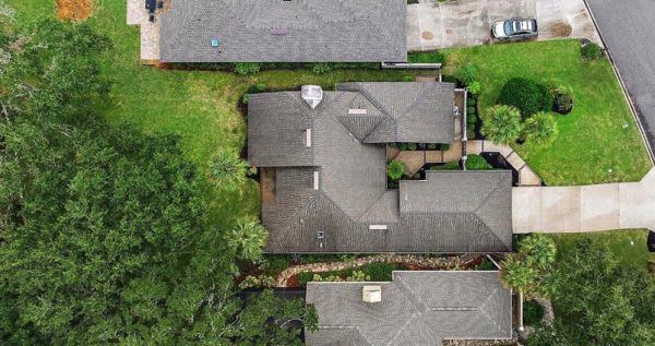 The courtyard was intended to bring privacy, light, and air into the middle of the home. It also makes it a cumbersome cut up building form and roof plan. The house has 18 corners – not counting two created by the fireplace bump-out. Not the most efficient plan form.