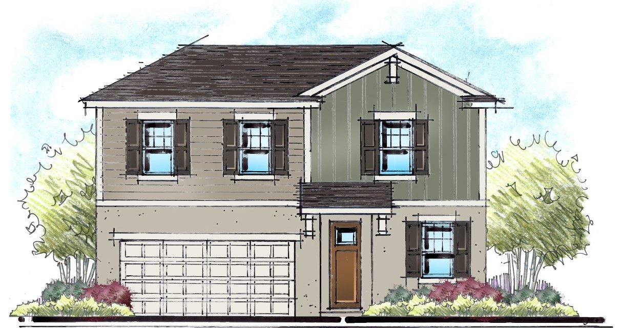 The potential impact of the siding on the second floor is completely lost since it was painted the same color as the stucco. A second body color separated with a white floor band would help. Lastly, the shutters and the front door should pop with an accent color.
