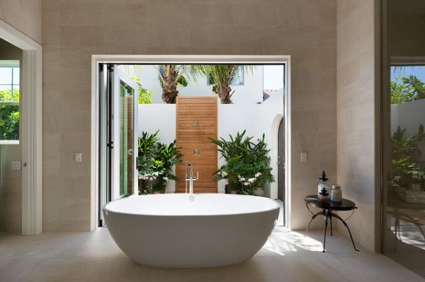 Don’t forget the candles, bath oils, and bubble bath. Locate the tub in front a private garden to add a touch of biophilia!