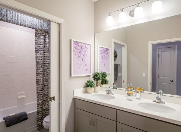 It wasn’t until the 1980 that two baths or more became the industry standard. Of course, in two story homes with all the bedrooms up, a half bath was mandatory. Today if you have four bedrooms, many buyers demand three bathrooms or more. Designing a two compartmented bath with two sinks and a separate room for the tub and toilet is more budget friendly. This allows a child to shower or use the toilet in private while another child or two can brush their teeth – saving crucial time on school mornings!