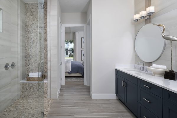 The term “spa-like” in baths is frankly overused. But what does it mean? It should mean a soothing design and layout that includes natural materials like wood or stone. Consider ample storage for minimal clutter. It also means an awesome shower, beautifully finished with a seat, shampoo niches, and upgraded shower head(s). The larger the better.