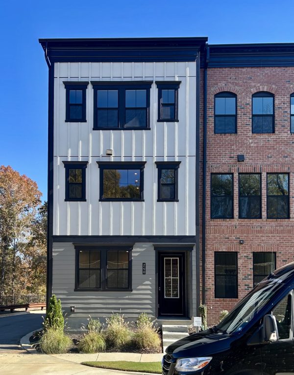 In the modern styles, we are seeing more color blocking where entire sections of the home or townhome use a different, high contrasting color. This is a very effective way to break up large wall areas, so we see color blocking used in a lot of multifamily homes.