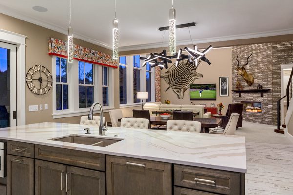 The big transition for kitchen designs began in the eighties and nineties along with the open floor plan. Kitchens turned into social spaces and the walls started to come down. First, the sink was placed on a peninsula facing outward. But these sinks weren’t completely exposed as they were surrounded by a 42” high wall. The thought was so guest couldn’t see dishes left in the sink. The faucets were also shielded from view.