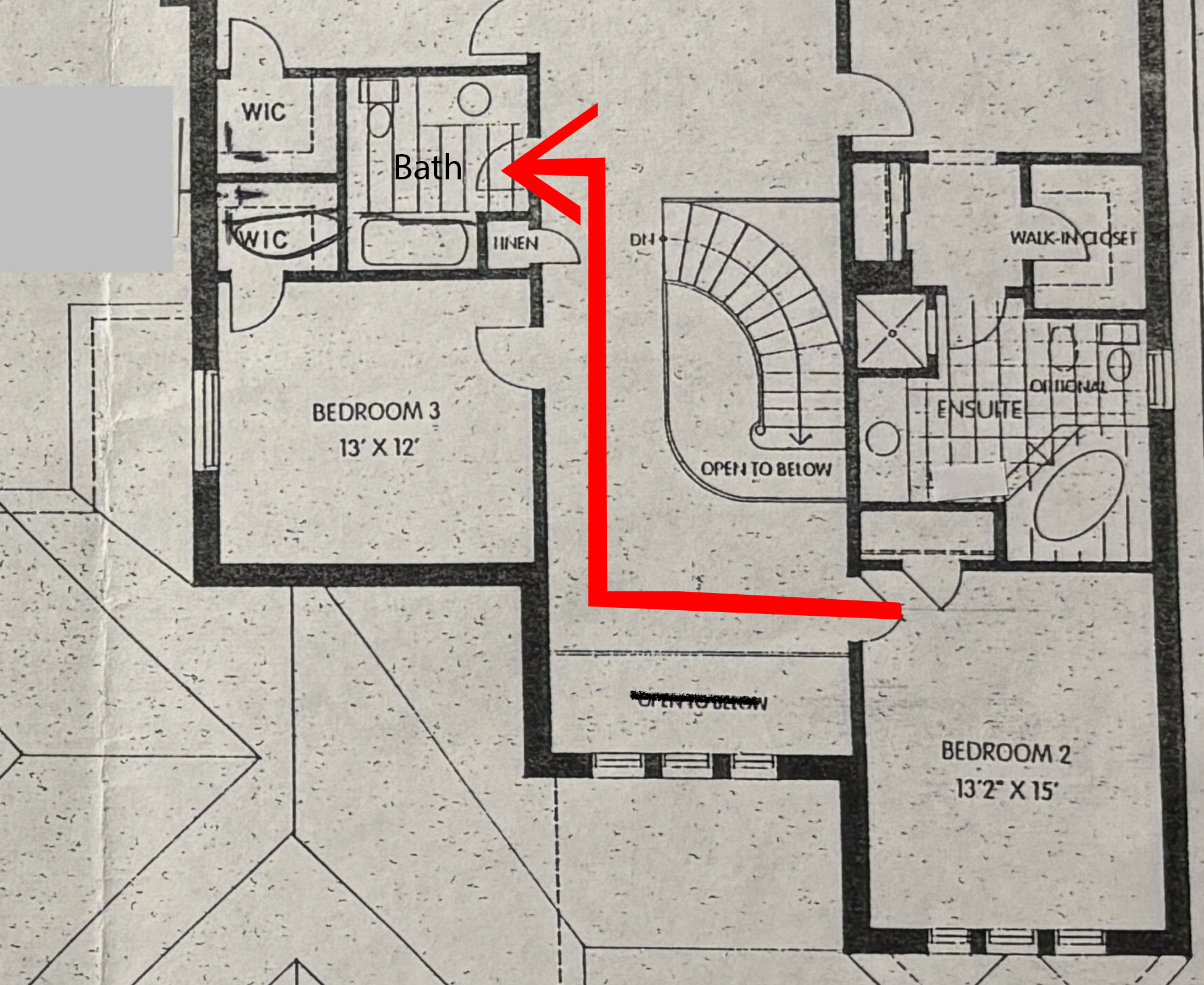- Bedroom 2. While the bedroom is nicely sized, the closet is tiny and its bath is on the other side of the second floor! Wow – talk about a naked run!!!!
