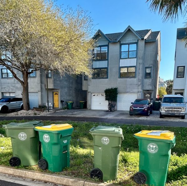 But with no one to maintain or regulate this area, it has become weed filled (probably has snakes too) and only a few palm trees remain. It has become the home of the oversized trash and recycling receptacle which litter the streets seven days of the week. What was once an asset has become an eyesore liability.