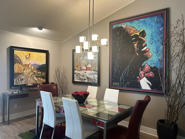 Since our townhome had attic access to the entire home, we could easily add more lighting. (Okay, some poor chap had to go in the attic.) This allowed us to add picture lights and the pendant fixture over the dining room table – now in a new location.
