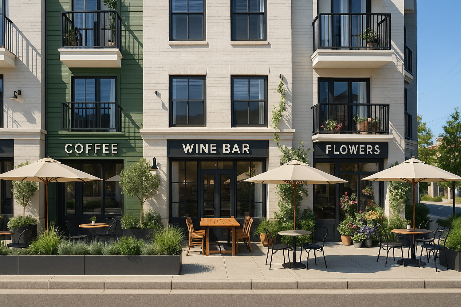 Perhaps it could be a wine shop or tasting room – another personal favorite. What about a flower shop or fruit stand adorning the sidewalk with their colorful offerings? Imagine the window-shopping opportunity store fronts full of glass could offer. Instead of closed window shades preventing interior views, there could be clever window displays inviting you to come inside. Retail could add vibrancy to the shuttered street corner.