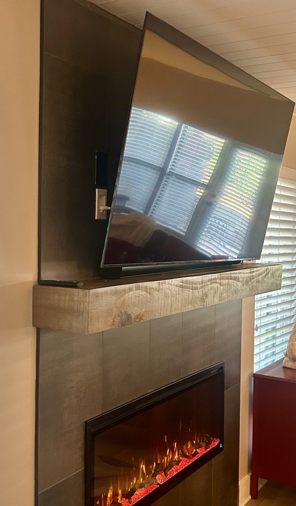 The next place where outlet color should be considered might be the finish around the fireplace – especially if there is going to be a TV mounted above. You might think the TV will hide the outlet – maybe. But if the TV is angled down for viewing by those seated lower, the mismatched outlet can be viewed from the side.