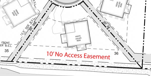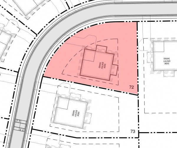 Once again, it looks like a big lot, but because it is so narrow in the front, not all plans in the collection will fit. You see this often with curves in the road and the above-mentioned cul-de-sac.