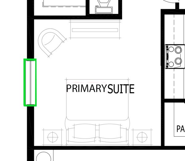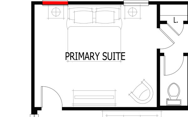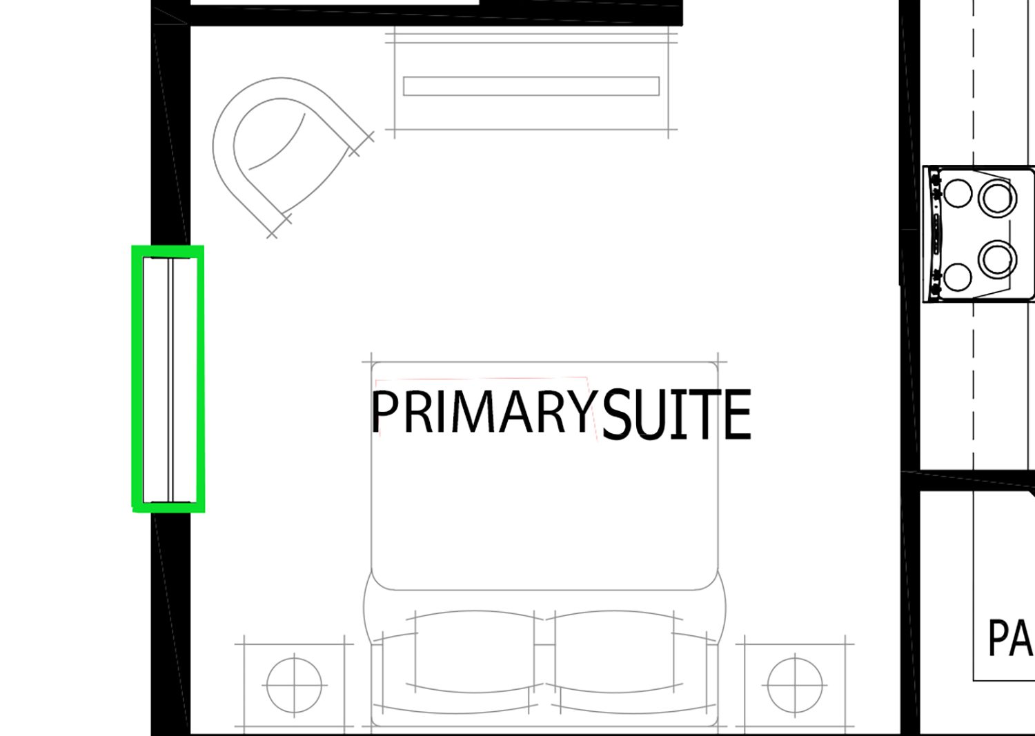 A better strategy would be to rotate the primary suite so the window wall is not on the bed wall. In the scenario, the windows are centered on the shorter wall. This would be a great opportunity to replace two 3’ wide windows with one 4’ wide window.